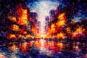 Paul-Henri est dans la ville. La ville, lieu de ses premières aventures. D’ailleurs c’est le titre : « Les aventures de Paul-Henri dans la ville ». On peut difficilement faire plus clair. La ville est noire, c’est à cause de la nuit. Mais il y a les lumières de la ville. Paul-Henri se dit « C’est beau une ville la nuit ». Cela aurait pu faire le titre de cette première aventure de Paul-Henri, mais le titre est déjà pris. Et heureusement Paul-Henri a prévu une boîte de chocolats.